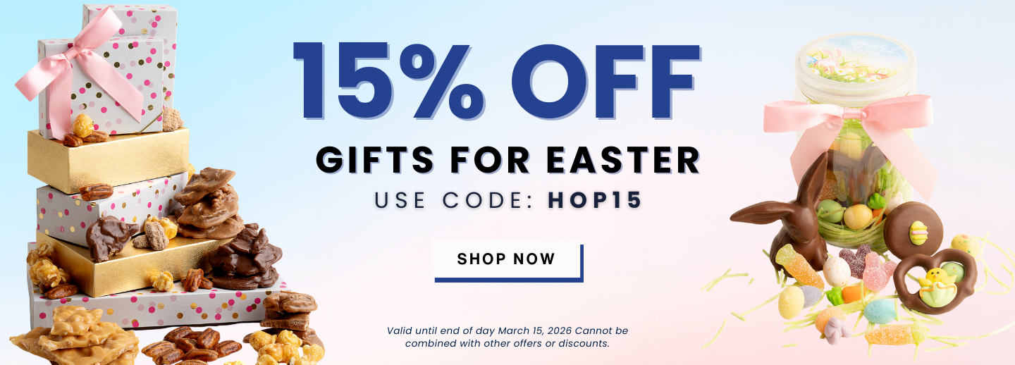 This magical box is filled with delights including milk chocolate turtles, original pralines, glazed and praline pecans, milk chocolate pretzels adorned with a white chocolate drizzle and more. On Sale $49.95 (previously $54.95)! Cannot be combined with any other offers or discounts.