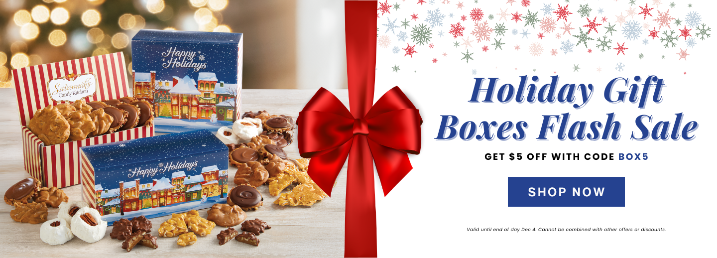 Old Fashioned Peanut Brittle in a Happy Holidays Gift Box