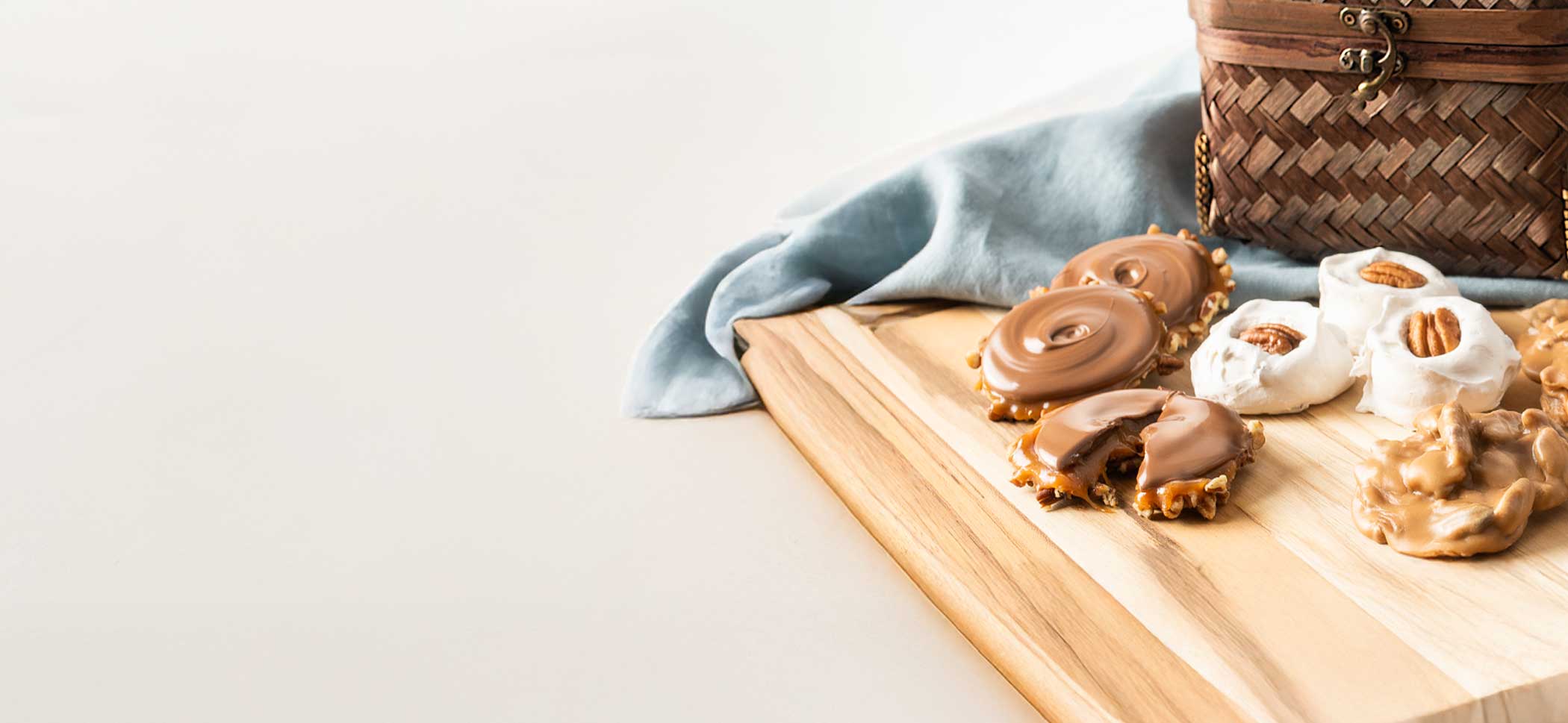 Our candies are hand-crafted in real copper kettles the old-fashioned way and filled with buttery goodness. We offer an array of irresistible treats that go beyond our renowned pralines. Our delectable offerings are brittle, toffee, and candied nuts — each is genuinely exceptional. These candies are more than a treat; they deliver an irresistible taste experience that captures the heart of the South.