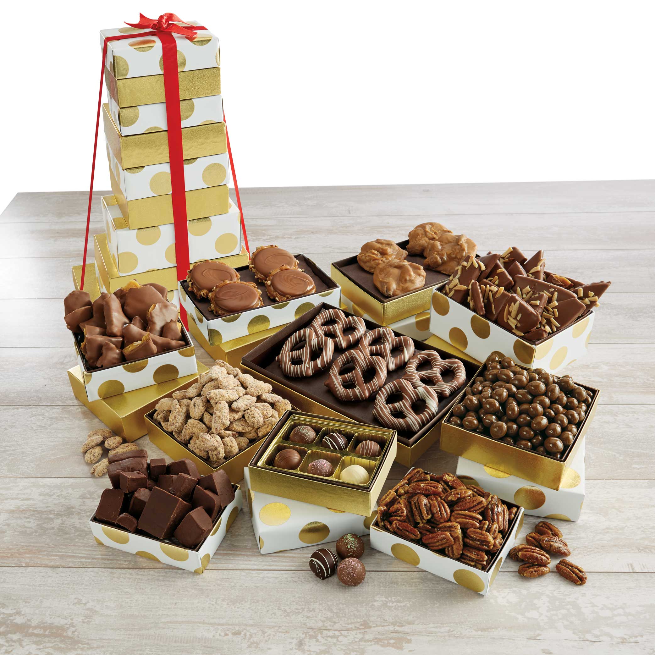 Savannah's Candy Kitchen is renowned for its delicious and delectable assortment of sweets, and our packaging is just as impressive as our treats. Savannah's Candy Kitchen packaging is designed to protect the goodies inside and add a touch of Southern charm and elegance to the overall presentation. Choose from gorgeous baskets, boxes, and tins, or share one of the elegant towers with friends, family, and colleagues.